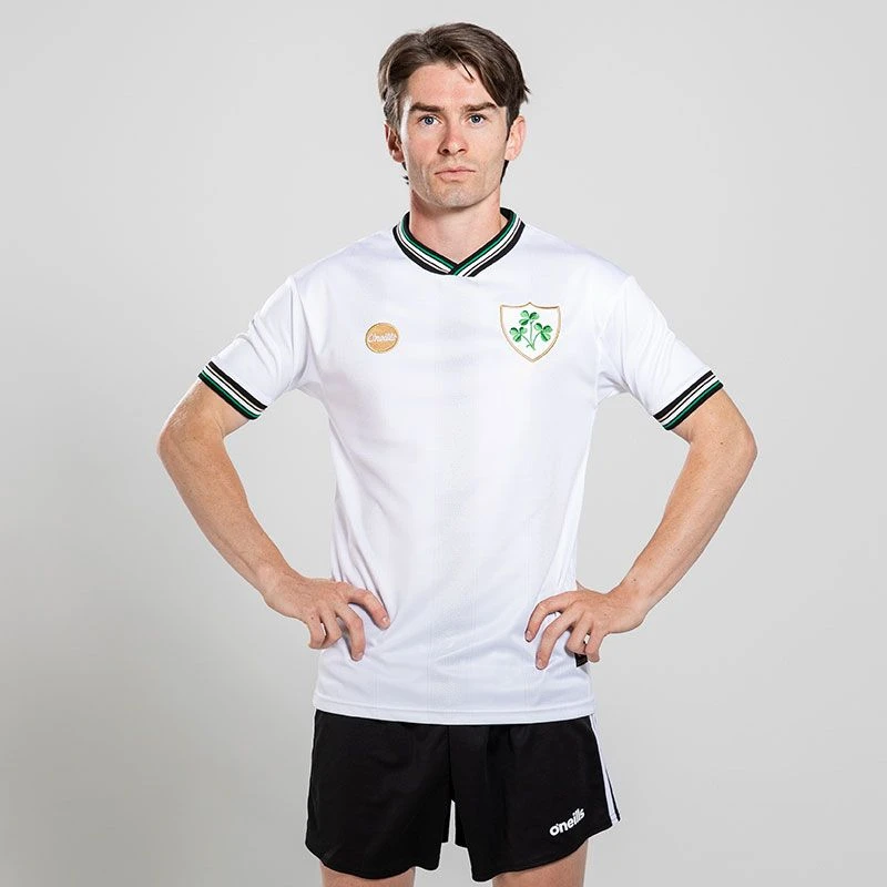 The Ireland Premier Jersey reinstates the traditional shamrock crest used on the kits of the Ireland soccer and rugby teams over the years. Encased in a shield with a rich gold thread, the shamrock crest recalls nostalgic memories of some of the greatest sporting icons and moments in Irish history. The classic OโNeills logo which was displayed on kits throughout the 70โs and 80โs sits proudly on the right chest with the new OโNeills logo on the upper back to create a timeless jersey.