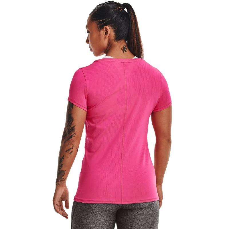 Workout in style with the Women’s Under Armour HeatGear® T-Shirt, made from super-soft pinhole mesh which provides breathability without sacrificing coverage.